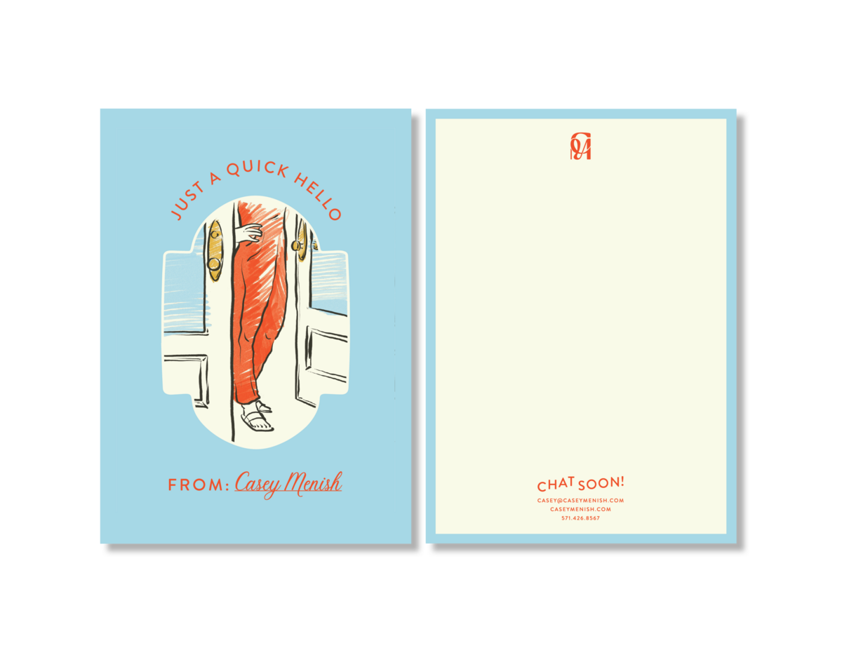 Each piece captures and releases the core of Casey’s service spirit into the world, delivering her crisp combination of honest authority and relaxed fun through designs for postcards, flyers, signage and more.