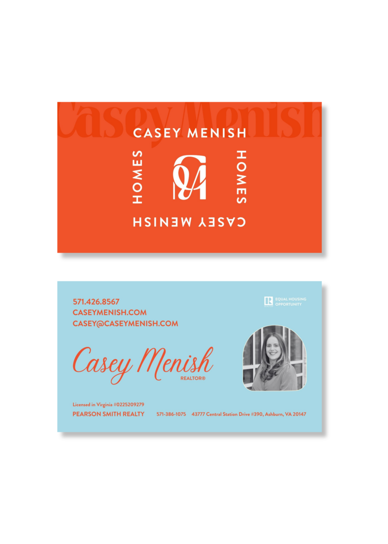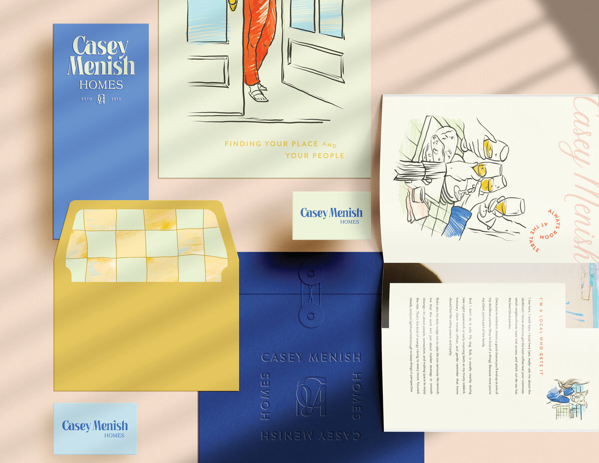 The color palette for Casey Menish Homes establishes timeless trust with a bright and modern twist. Our hero red and blue tones are supported by a secondary palette with a balance of warm, slightly retro hues. When united, the system unlocks a number of interesting and vibrant combinations that are endlessly useful across hard-working print + digital applications.
