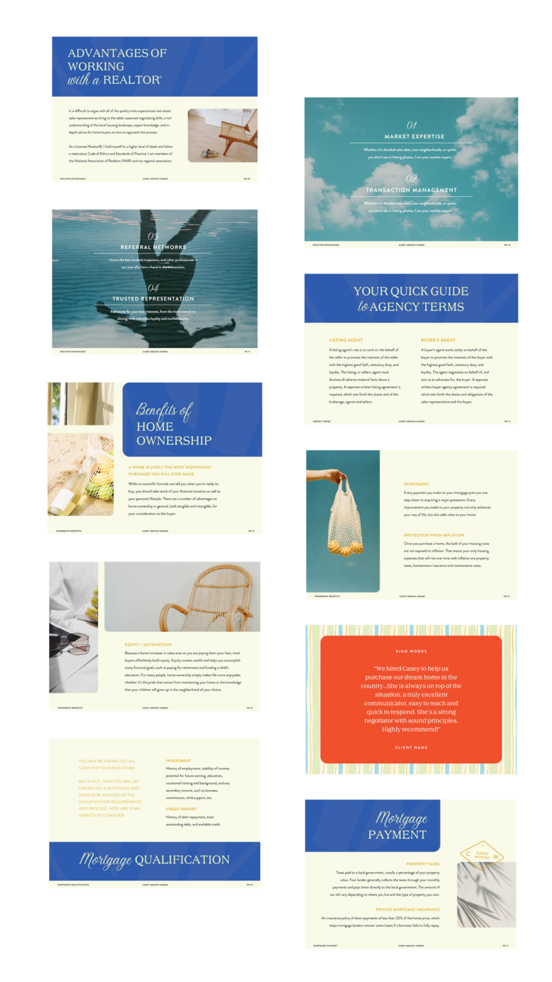 Leaning on our team for customization support, Casey rounded out her new marketing toolbox with a suite of client guides, using our signature studio templates as a clean base.